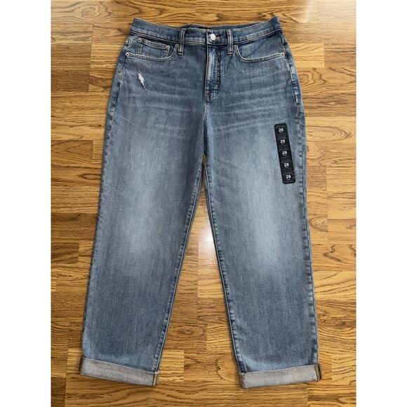 J Crew Relaxed Boyfriend Jeans Women’s Waist Size 28 Distressed Cuffed Stretch