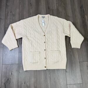 J Crew Relaxed Cable Knit Wool Blend Cardigan Sweater US Women's Small/Medium