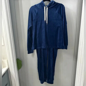 J Crew Relaxed Jogger Set Royal Blue Velour Joggers and Hoodie Set Size Medium