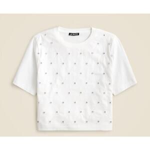 J. Crew Relaxed Lattice Embellished Cropped T-Shirt White Size Medium