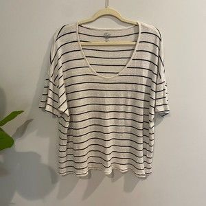 J. Crew Relaxed Linen Drop Shoulder Scoop Neck Stripe Tee Size Medium