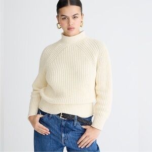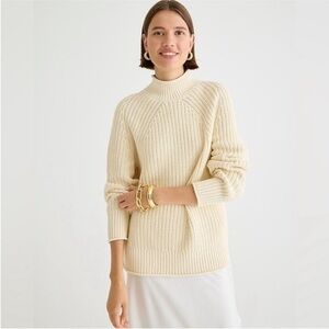 J. Crew Relaxed Roll Neck Sweater Cream Cableknit Pullover BE159