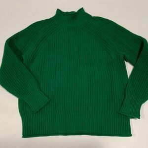 J. Crew Relaxed Rollneck Cotton Sweater in Kelly Green