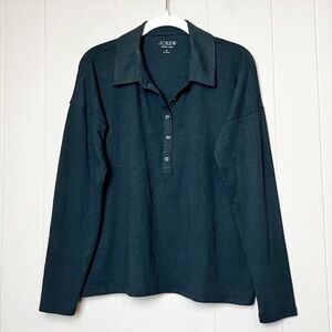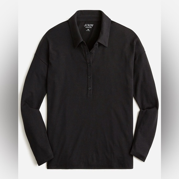 J. Crew Relaxed Stretch Linen Polo Top Small black lightweight collar minimalist solid capsule wardrobe closet staple long sleeve