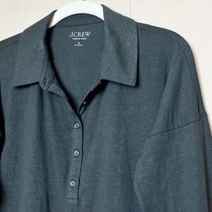 J. Crew Relaxed Stretch Linen Polo Top Small black lightweight collar minimalist