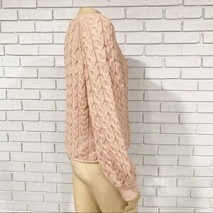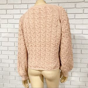 A summer-to-fall sweater, with a comfy, cushy cable-knit and a slightly cropped, easy fit. Detail we love: the extra-voluminous sleeves for an added touch of drama.