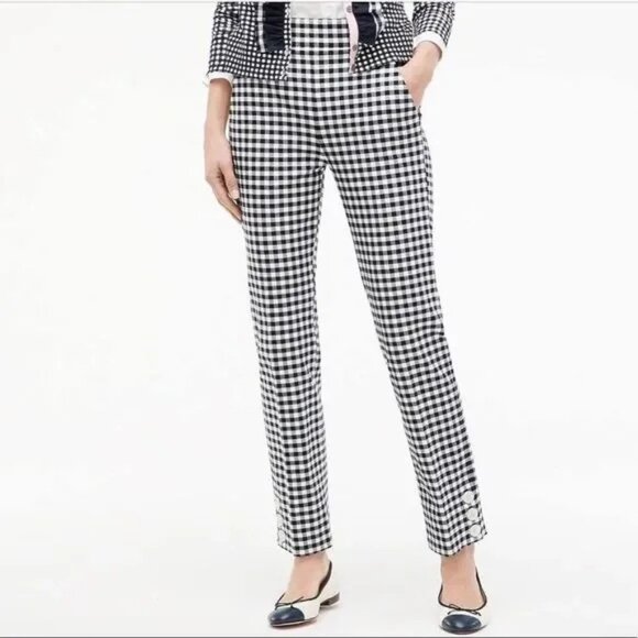 J. Crew Remi Pant in blue/white Gingham with Buttons, size 2. Like-new condition. Cotton. 13” flat waist, 26.5” inseam. Pockets still sewn shut.