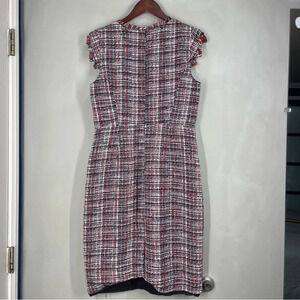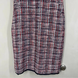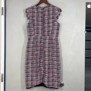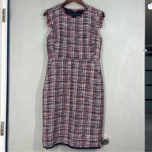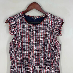 J Crew Resume Tweed Sheath Dress Blue Red White Pockets Fringe Career Womens 10P
