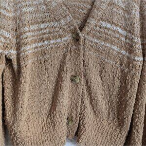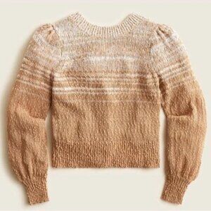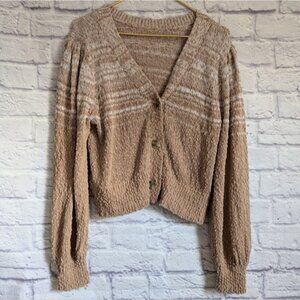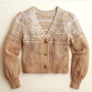 J. Crew Reversible Space Dyed Cardigan Sweater L Brown Tan Textured Puff Sleeve