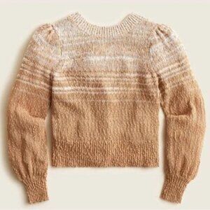 J. Crew Reversible Space Dyed Cardigan Sweater L Brown Tan Textured Puff Sleeve