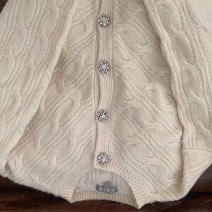 This is BEAUTIFUL. J Crew cream cardigan with rhinestone buttons. Soft and thick, totally luxurious. Size xs.