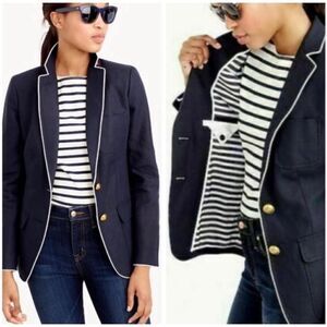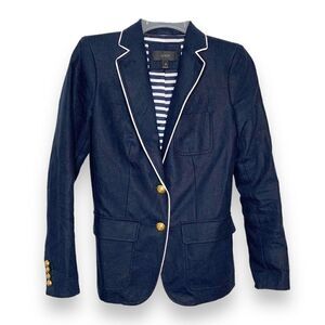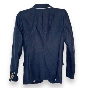 J. Crew Rhodes Navy Blue Blazer 100% Linen Nautical Crest Gold Buttons Size 00