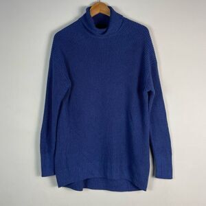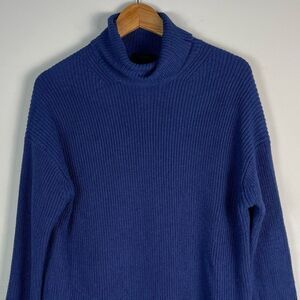 J Crew Ribbed Cotton Cashmere Blend Turtleneck Relaxed Sweater Sz S Blue