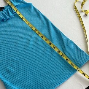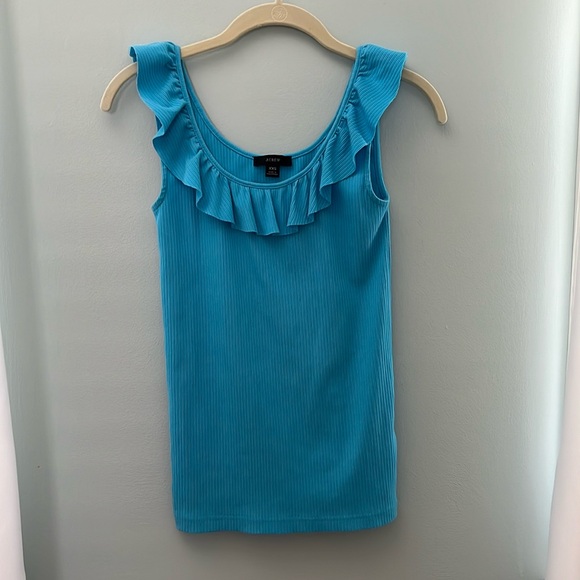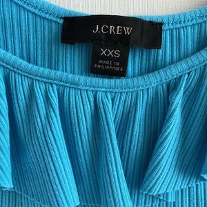 J Crew Tank with Ruffled Neckline, XXS Beautiful Turquoise Blue, Ribbed Fabric