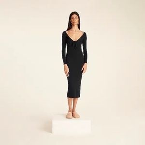 With a midi silhouette (that hits midcalf), this figure-hugging dress is your new date-night go-to. More to love: the comfy ribbed fabric and retro tie-front detail. Plus, it was crafted at a Fair Trade Certified™ factory that provides additional income and better conditions for the people who work there.