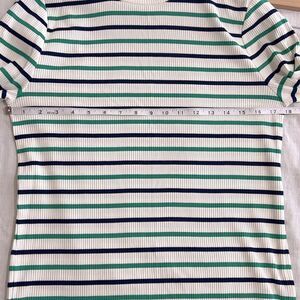 J. Crew Lisbon Stripe Ivory & Emerald Vintage Rib Turtleneck with Buttons