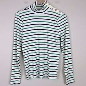 J. Crew Ribbed Turtleneck Top Striped Sailor Gold Buttons Size Medium