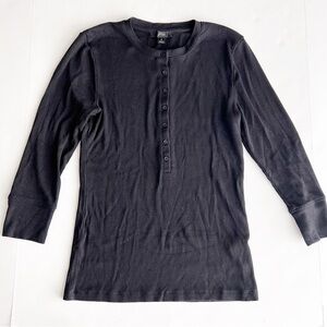 J Crew Ribbed henley with three-quarter sleeves shirt top black