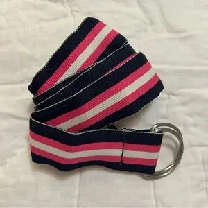 J Crew Ribbon Belt Womens M/L D-Ring Pink Navy Stripe Nautical Preppy Heritage