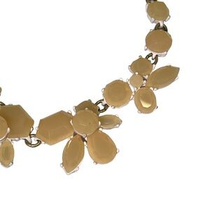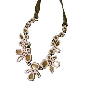 J Crew ribbon necklace with light orange rhinestones set in a flower pattern.