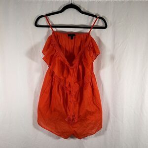 J. Crew Romper Women's Medium Orange Elastic Semi-Sheer Cotton 2" Inseam