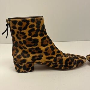 J Crew Roxie Captoe Leopard Print Ankle Boots Calfhair women’s size 7.5