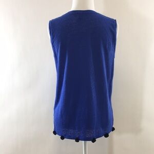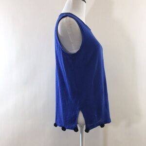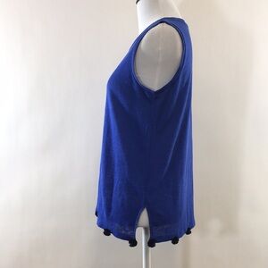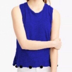 J. Crew Royal Blue Tank Top Womens XXS Linen Pompom Pom Pom