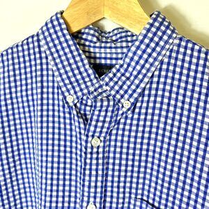 J. Crew Royal Blue White Gingham Check Seersucker SS Buttondown Shirt Sz L