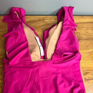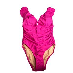J Crew Ruched One Piece Swimsuit Ruffle V Neck Radiant Fuschia Pink Deep V NWT
