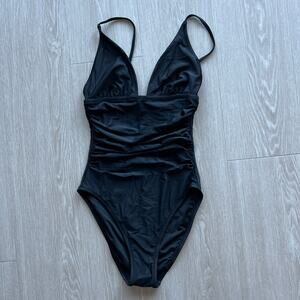J Crew Ruched Plunge One Piece Swimsuit Size 2 Black