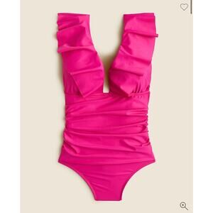 J. Crew Ruched Ruffle One-Piece Swimsuit, NWT/New With Tags, Size 8, Color is Magenta Orchid (Pink).