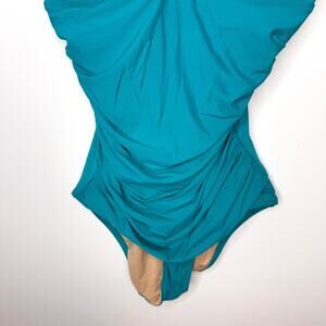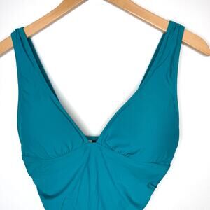 J. Crew Teal Blue Green Ruched V Neck One Piece Swimsuit Size 8 Long Torso