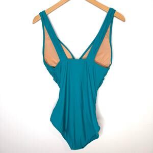 J. Crew Ruched V Neck One Piece Swimsuit In Teal Blue Green Size 8 Long Torso