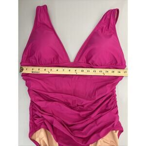 J Crew Ruched V Neck One Piece Swimsuit Womens 18 Radiant Fuchsia Pink Swim Suit