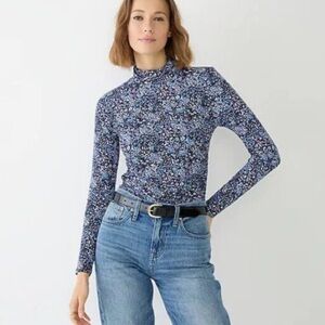 J. Crew Ruched matte jersey turtleneck in Coventry floral