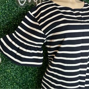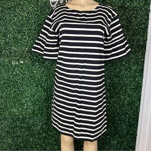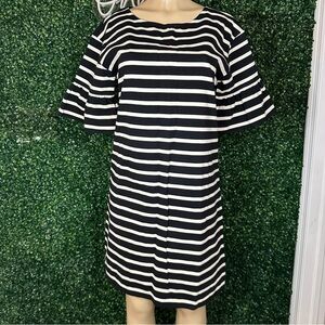 J. Crew Ruffle Bell Sleeve Black and White Striped Shift Dress Size M