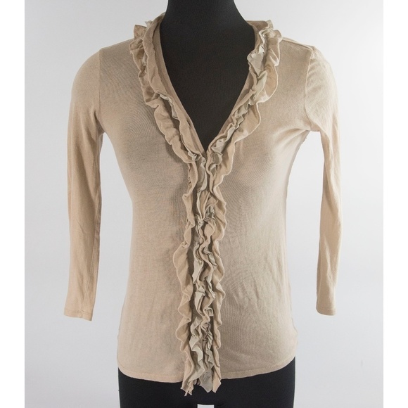 J Crew Ruffle Button Down Fitted Knit Blouse XS