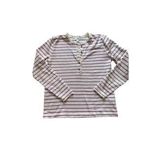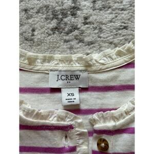 J. Crew Ruffle Collar Purple and Cream Stripe Long Sleeve Top XS