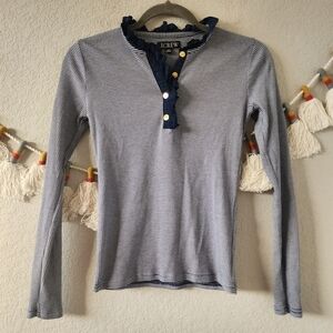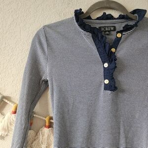 J. Crew Ruffle Collar Striped Long Sleeve Vintage Rib Babytee Henley Basics XS
