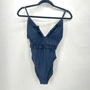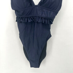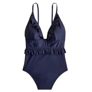 J. Crew Ruffle Deep-V One Piece Swimsuit Size 4 Blue Padded Beach Preppy Pin Up