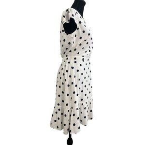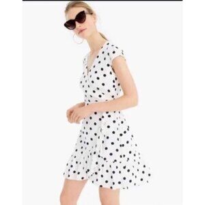 J. Crew Ruffle Front Faux Wrap Mini Dress in White Polka Dot Size 2 NWT