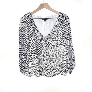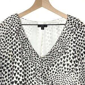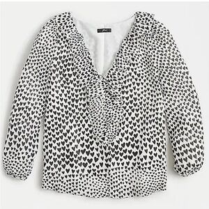 J. Crew Ruffle Heart Print Chiffon Blouse White Black S