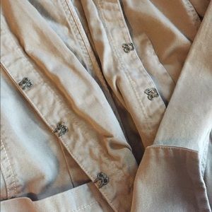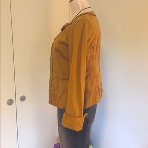 Perfect spring jacket. Light weight, work or play collarless two pocket cotton with rolled sleeves.