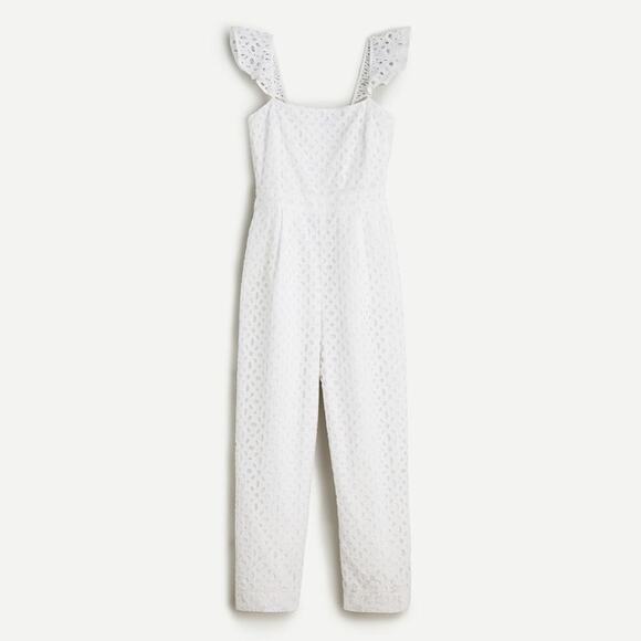 J. Crew Ruffle Jumpsuit in Embroidered Eyelet in White Size 12.