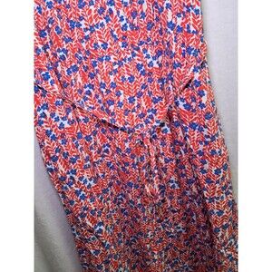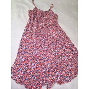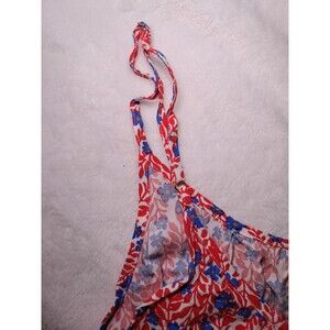 J. Crew Ruffle Midi Curved Hem Dress Red Blue Floral Strappy BI399 Size 14