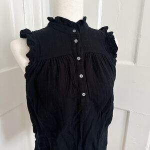 Super cute 1/2 button-up tank top blouse from J Crew. Black with gauze material and a mock neck/ruffle trim. Worn once and in excellent condition.