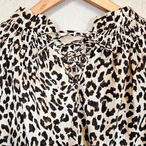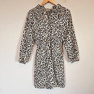J Crew Ruffle Neck Puff-sleeve Dress Leopard Print Women's Size XS Casual Work