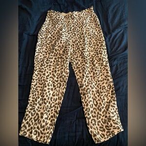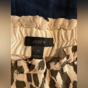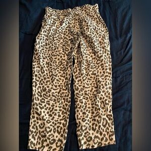 J. Crew Ruffle Paperbag Waist Leopard Print Linen Pants Office Business Casual