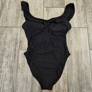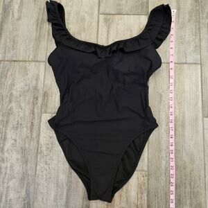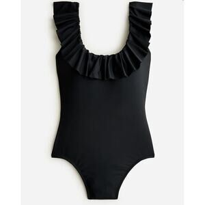 J. Crew Ruffle Scoopback One-Piece Swimsuit Women’s 10 Black Classic Elegant