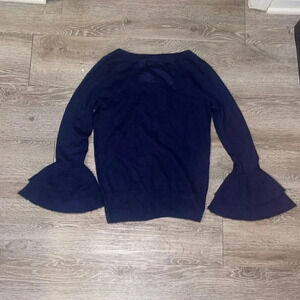 J. Crew Ruffle Sleeve CASHMERE Sweater Navy Blue Bell - xs